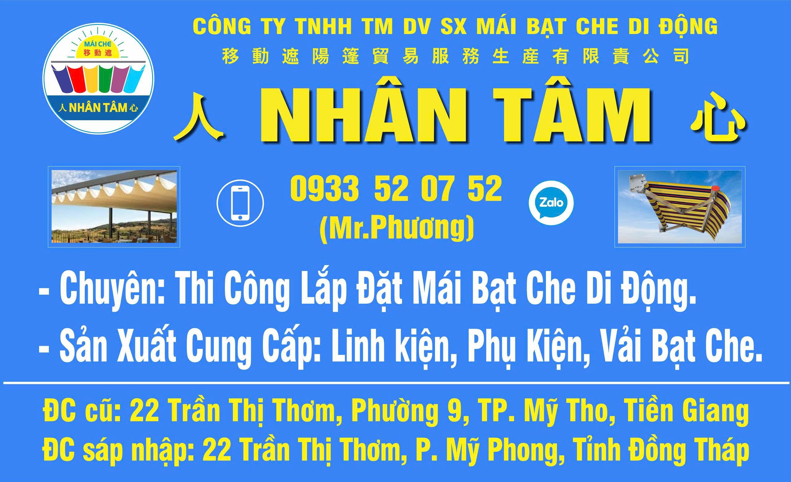 CTY TNHH TM DV SX MÁI CHE DI ĐỘNG 人 NHÂN TÂM 心